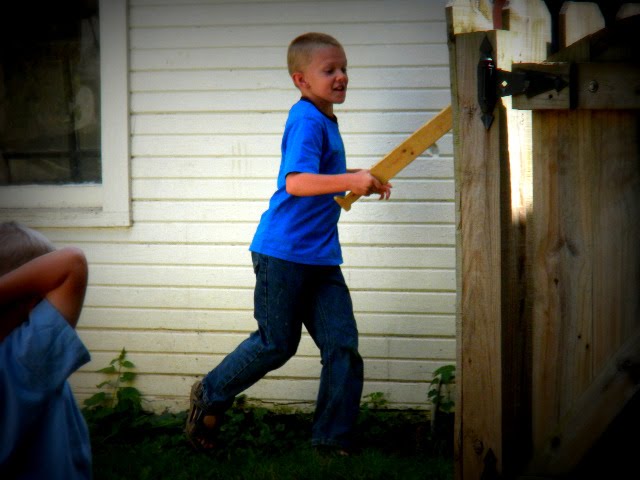 This past weekend was so nice. The weather was pretty close to perfect if you ask me. Sunday afternoon brought a time for relaxing and playing with the children. Beloved became a dragon, Special K and Sweet E were princesses, and Big T and Little E were knights. Beloved swooped in and captured the princesses. So what were the knights to do.....but to rescue the damsels in distress. :-)